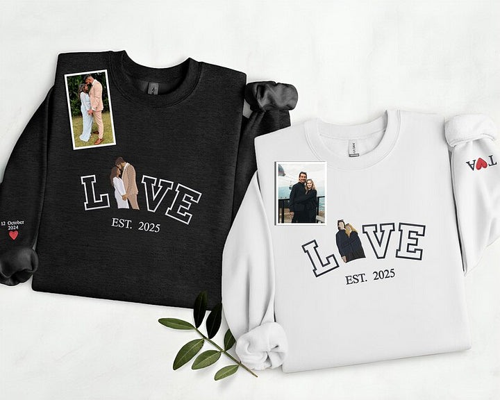 Personalized Embroidered Photo Couple LOVE Est Year Crewneck/Hoodie/T-shirt