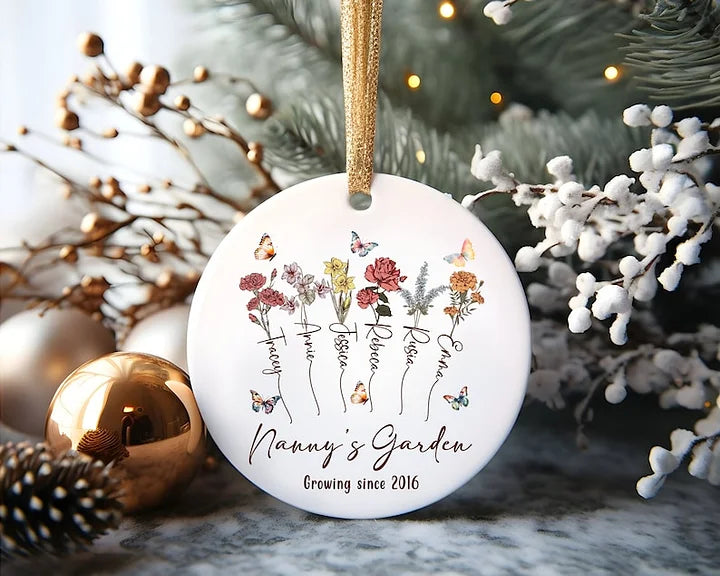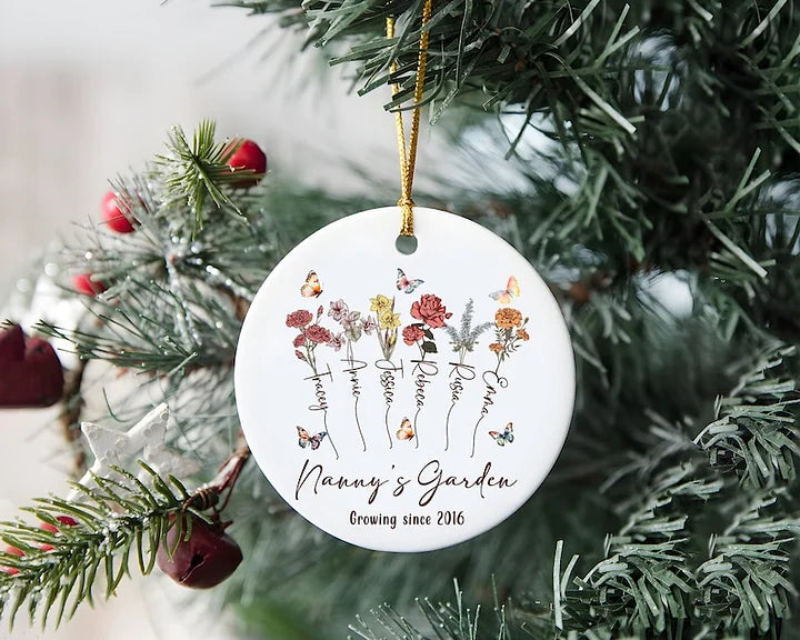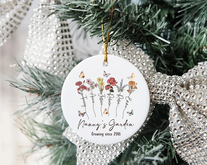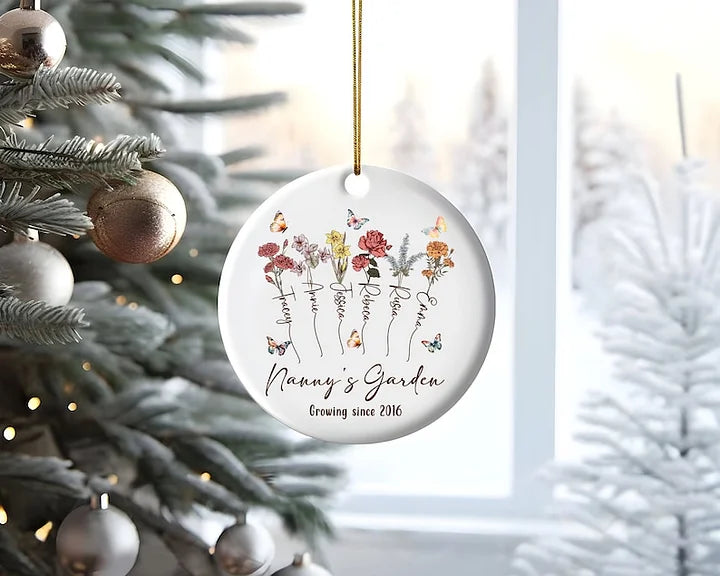 Mama's Garden Personalized Birth Flower Christmas Ceramic Ornament
