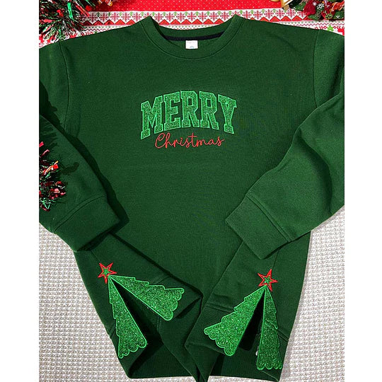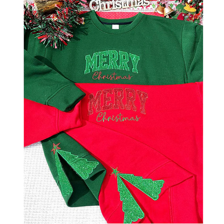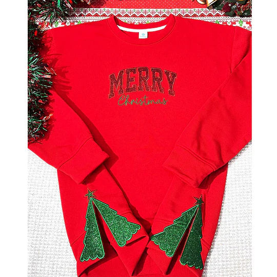 Merry Christmas Side Bell Bow Embroidered Sweatshirt
