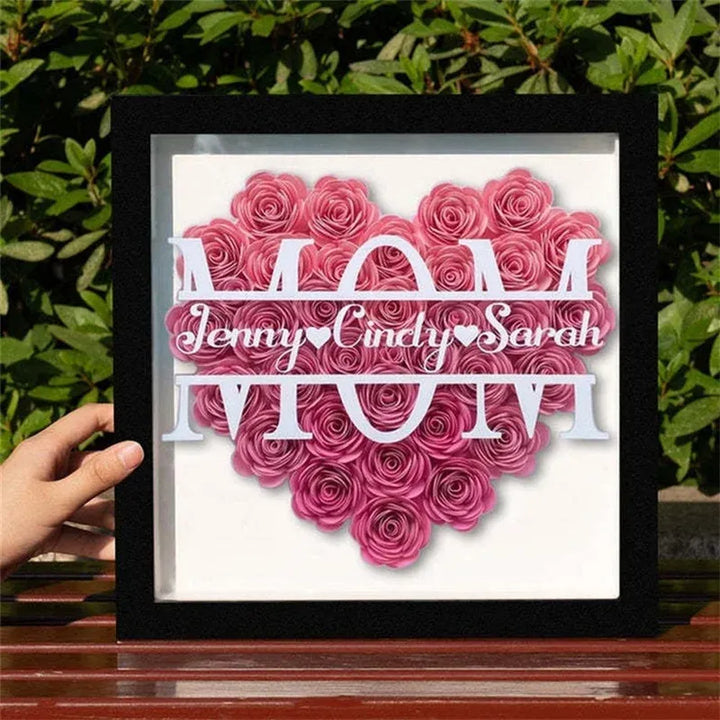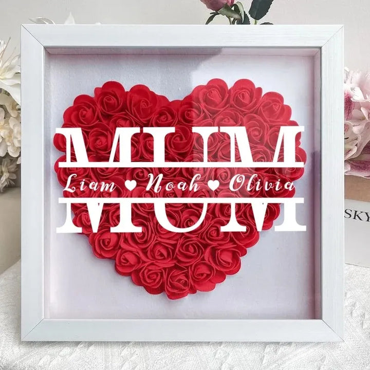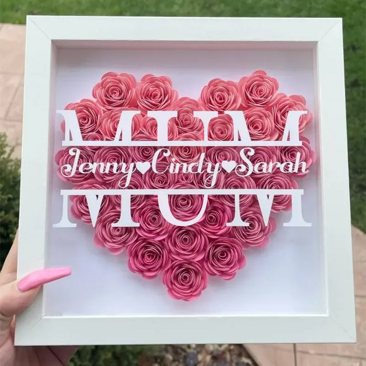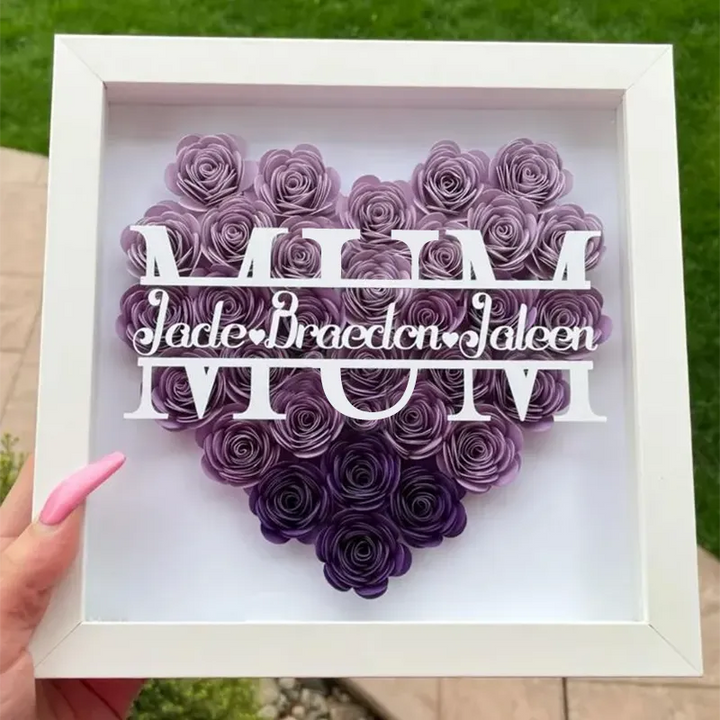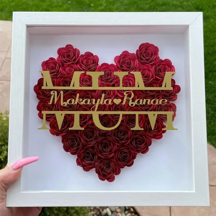 Mum Heart Shaped Monogram Flower Shadow Box Gift