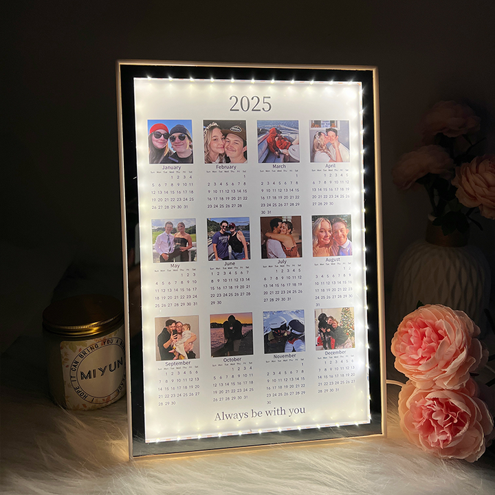 Personalized 2025 Calendar Mirror Light Box with Photo