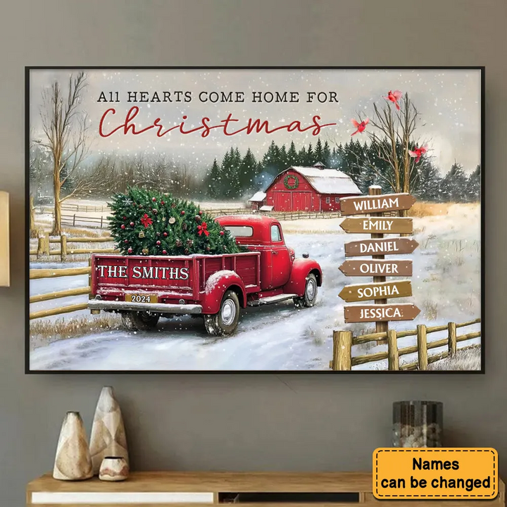 Every detail of the print is designed to evoke nostalgic memories of Christmases past—your family name prominently displayed, surrounded by the charming imagery of a winter wonderland. It’s a treasured keepsake that will be cherished for years to come, reminding everyone that all hearts come home for Christmas.
