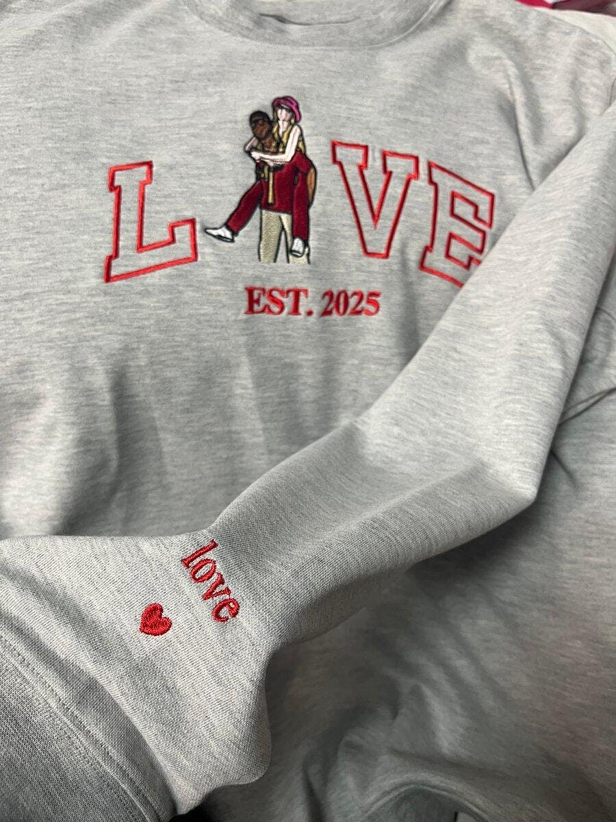 Personalized Embroidered Photo Couple LOVE Est Year Sweatshirt / Hoodie / T-Shirt