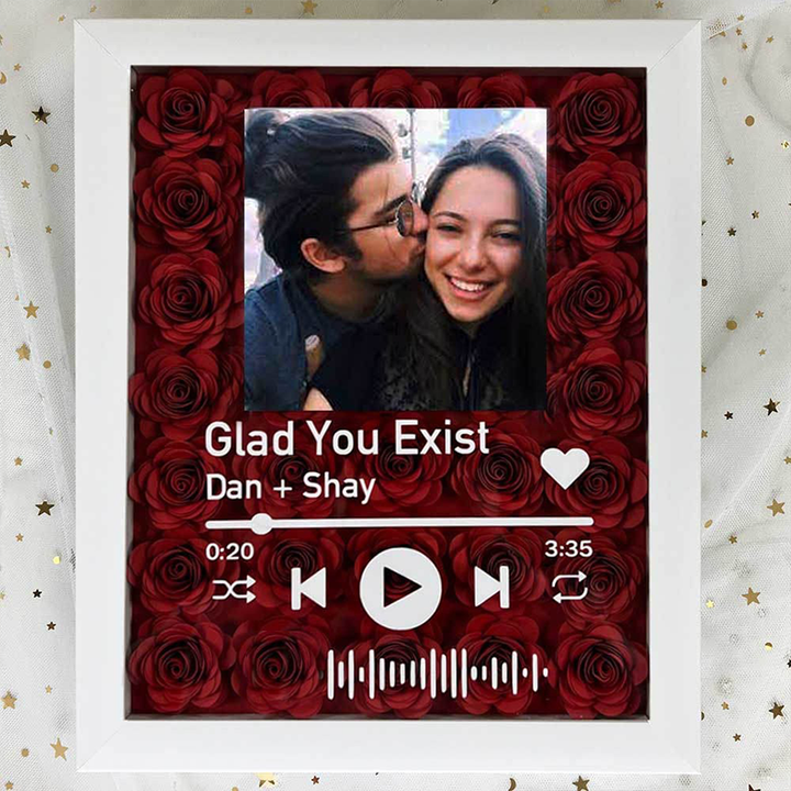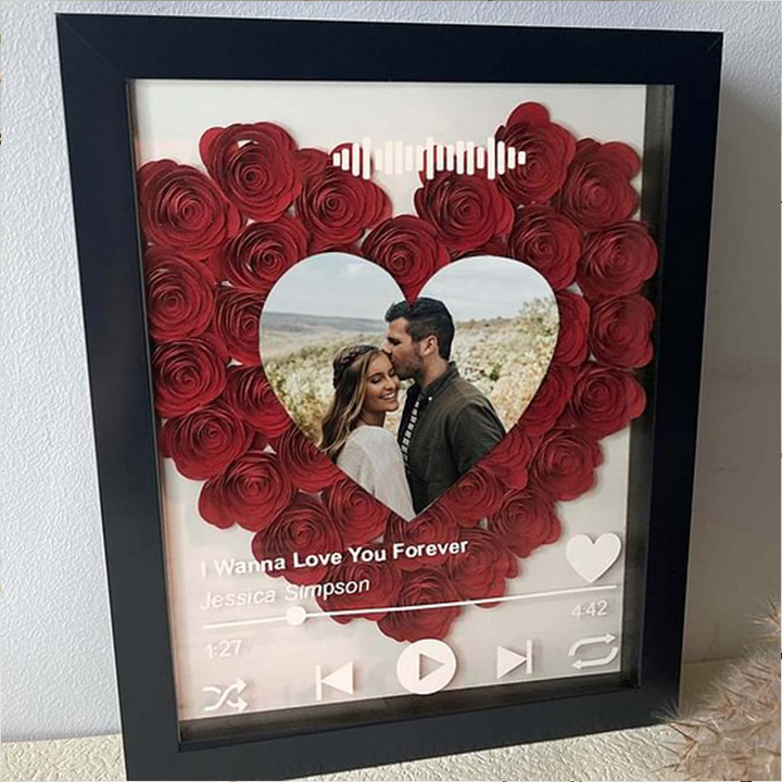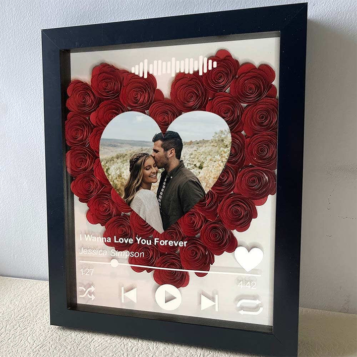 Personalized Flower Shadow Box With Couple Photo For Wedding Anniversary Valentine's Day