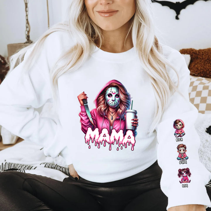Personalized Hand-drawn Designs Horror Mask Halloween Sweatshirt: Wear Your Dark Side in Style! 🎃