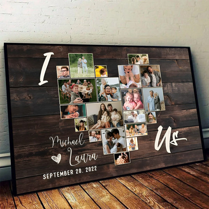 [Online Preview]Personalized I Love Us Heart Shape Photo Collage Canvas Poster,Valentine Gift