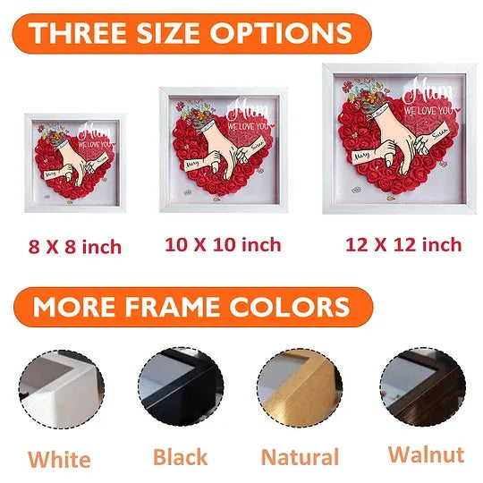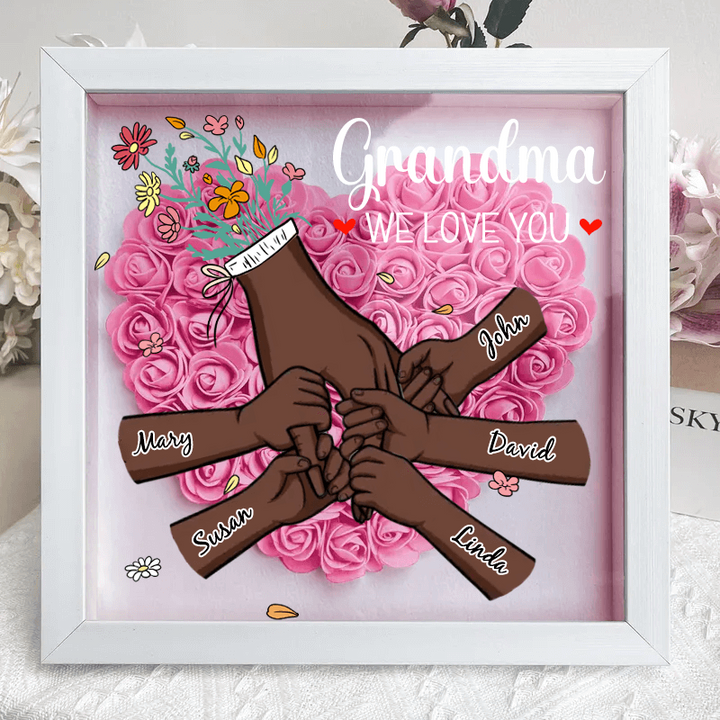 Personalized Mother & Grandma Flower Shadow Box with Names – A Unique Keepsake with Customizable Skin Tones & Up to 12 Hand Selections