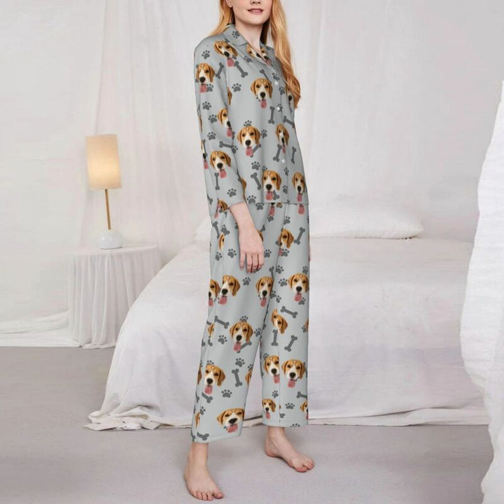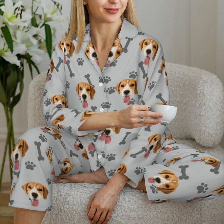 Personalized Pajamas Custom Pet Photo Bones and Paw Prints Pattern Design Attractive Gift for Pet Lovers