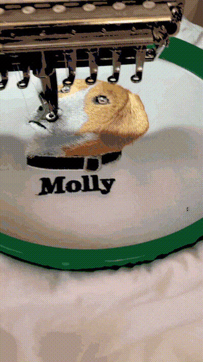 Design Process:Â Our skilled designers will transform your photo(s) into a detailed embroidery template, capturing the essence and personality of your pet.