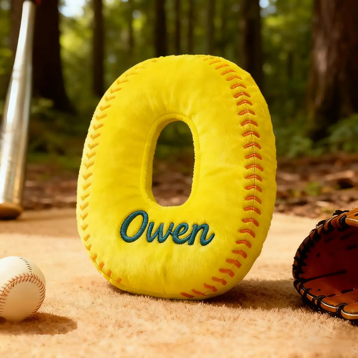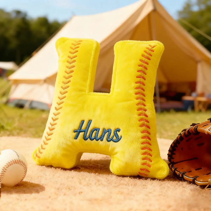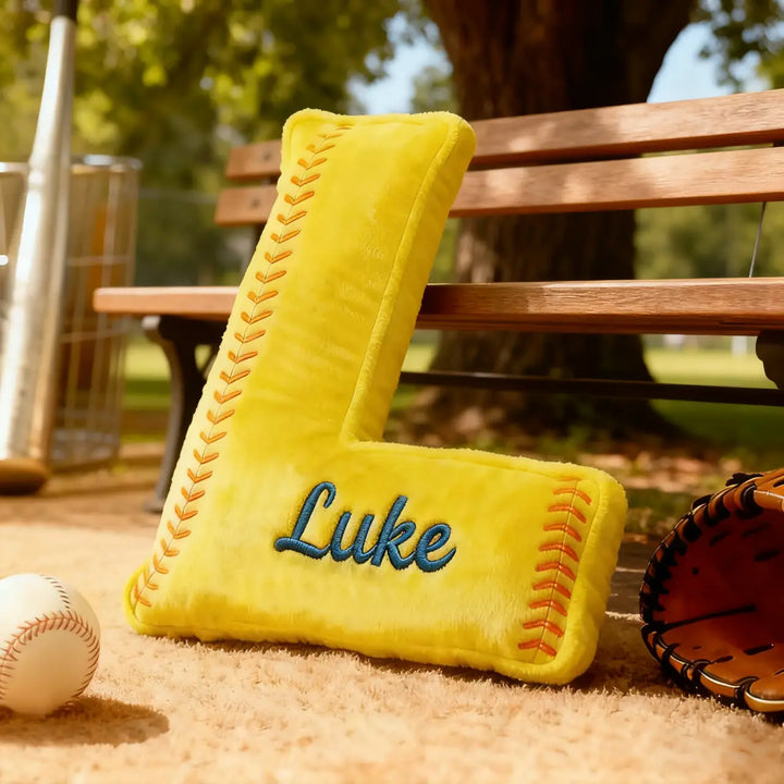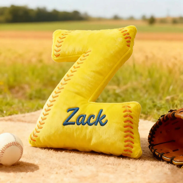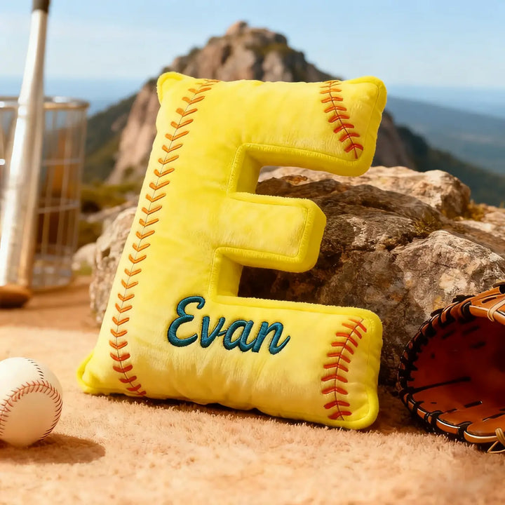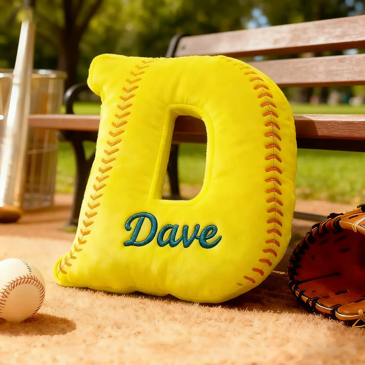 Personalized Softball Themed Letter Shaped Pillow with Custom Name