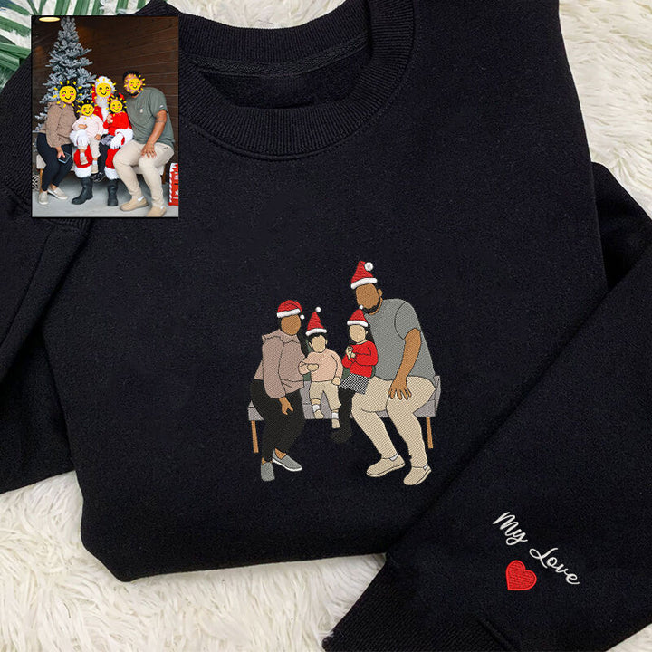 Personalized Sweatshirt Embroidered Custom Photo with Christmas Hat Design Perfect Gift for Family Members
