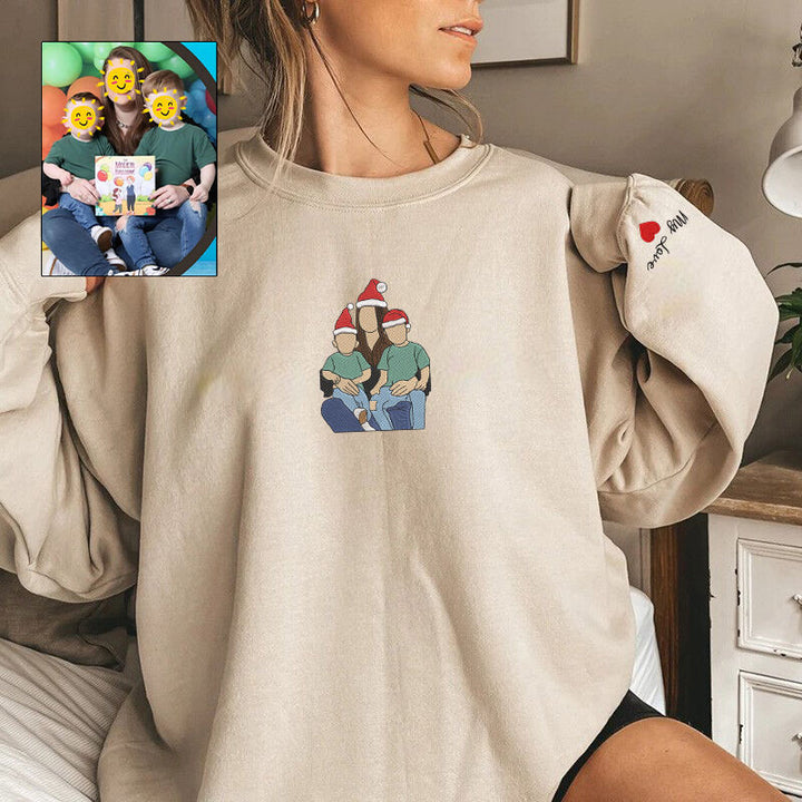 This holiday season, give the gift that captures your most precious family moments! Our Personalized Sweatshirt turns your favorite family photo into a beautiful embroidered masterpiece, complete with festive Christmas hat designs. Whether it's a picture of your children, your entire family, or a special loved one, we'll transform it into a wearable work of art that will be cherished for years to come.