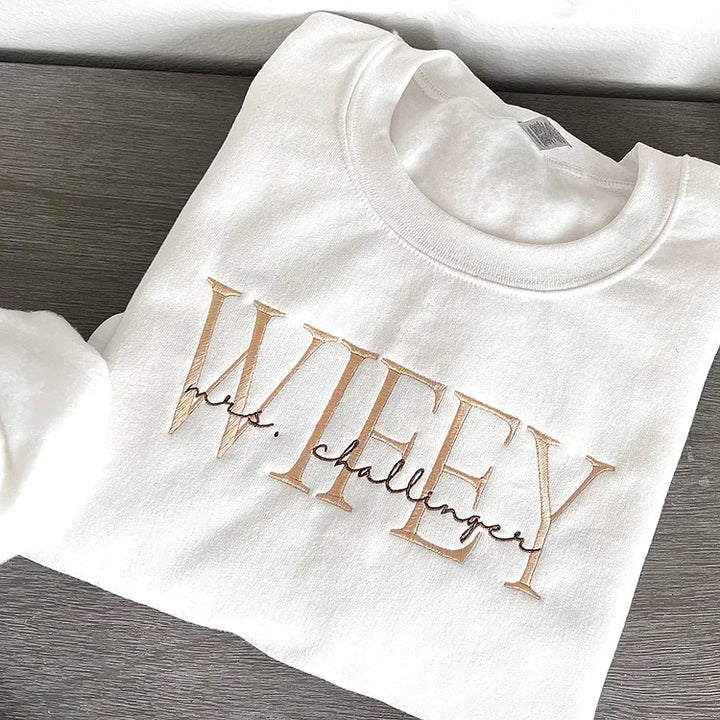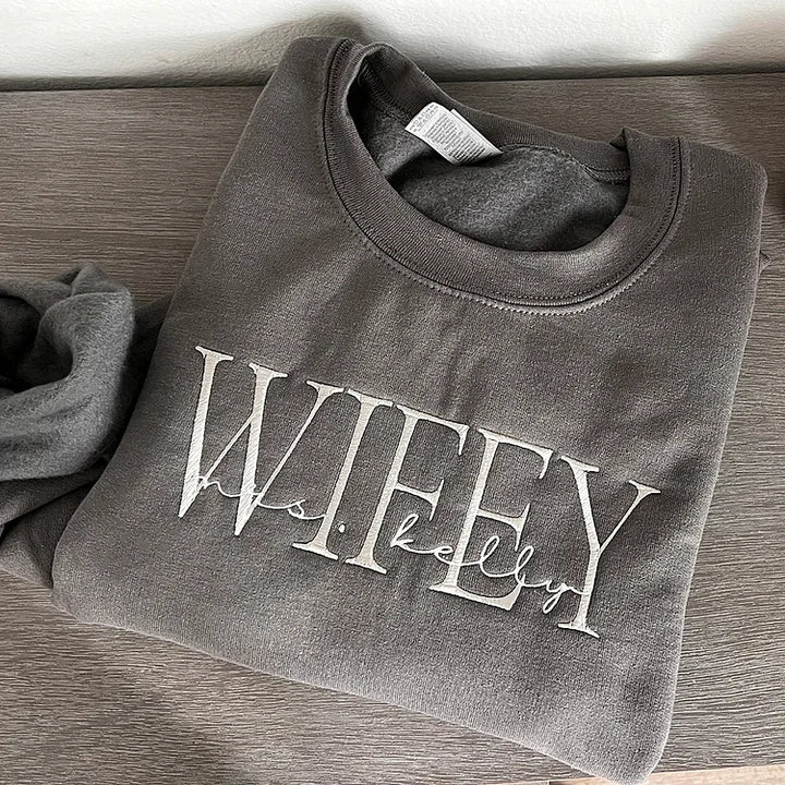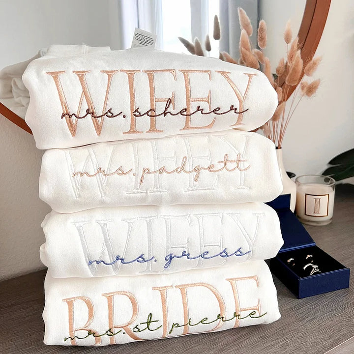 Not only is it a thoughtful gift for newlyweds and brides-to-be, but it also serves as a beautiful memento of your love story. Whether it’s for an anniversary, wedding shower, or just because, this embroidered sweatshirt is a wonderful way to celebrate the wifey in your life.