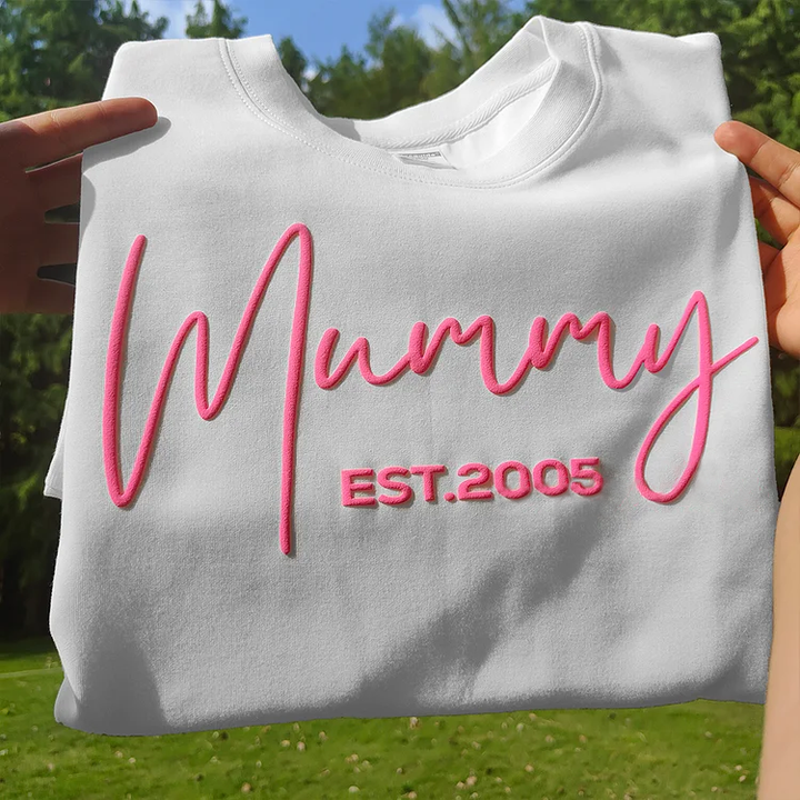 Puff Print Mama Sweatshirt With Kids Names On Sleeve