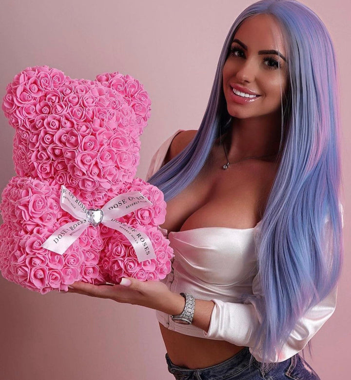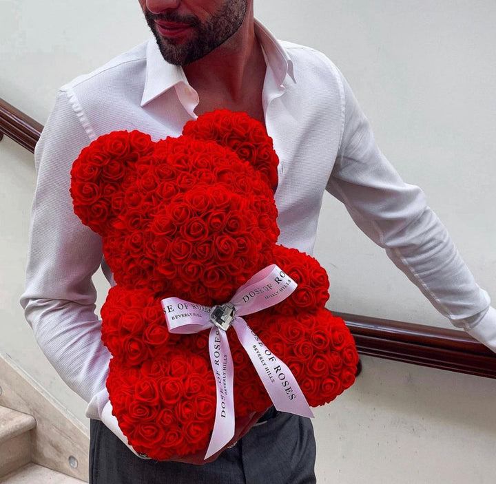 The roses used are decorative and in 3D, this means that they are practically the same as natural ones; to create a rose bear, these are usually assembled by hand, which gives the product a unique charm that can be noticed immediately.