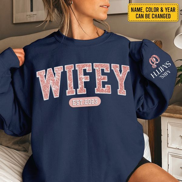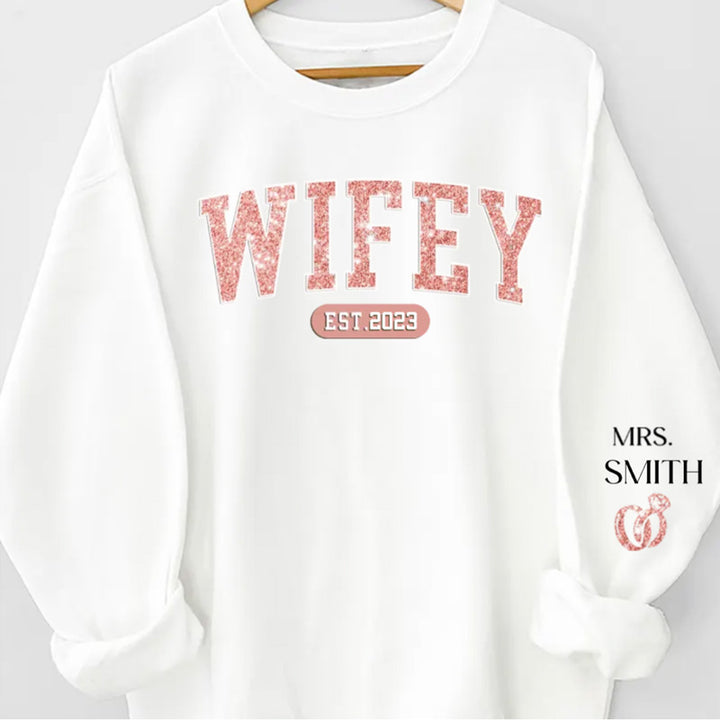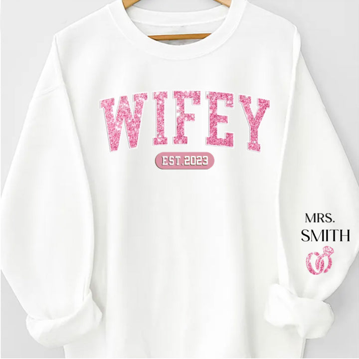 Wifey Est. - Couple Personalized Custom Unisex Sweatshirt with Design on Sleeve