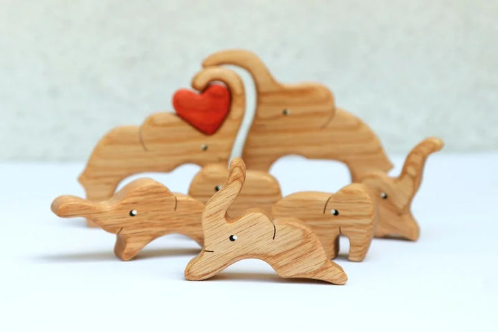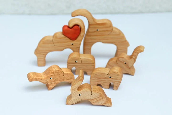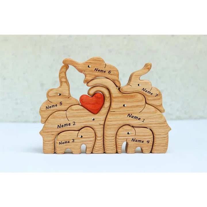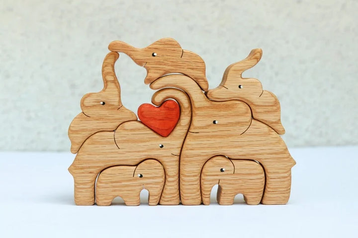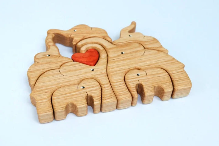 Wooden elephants family of 7 members with a heart puzzle keepsake gifts